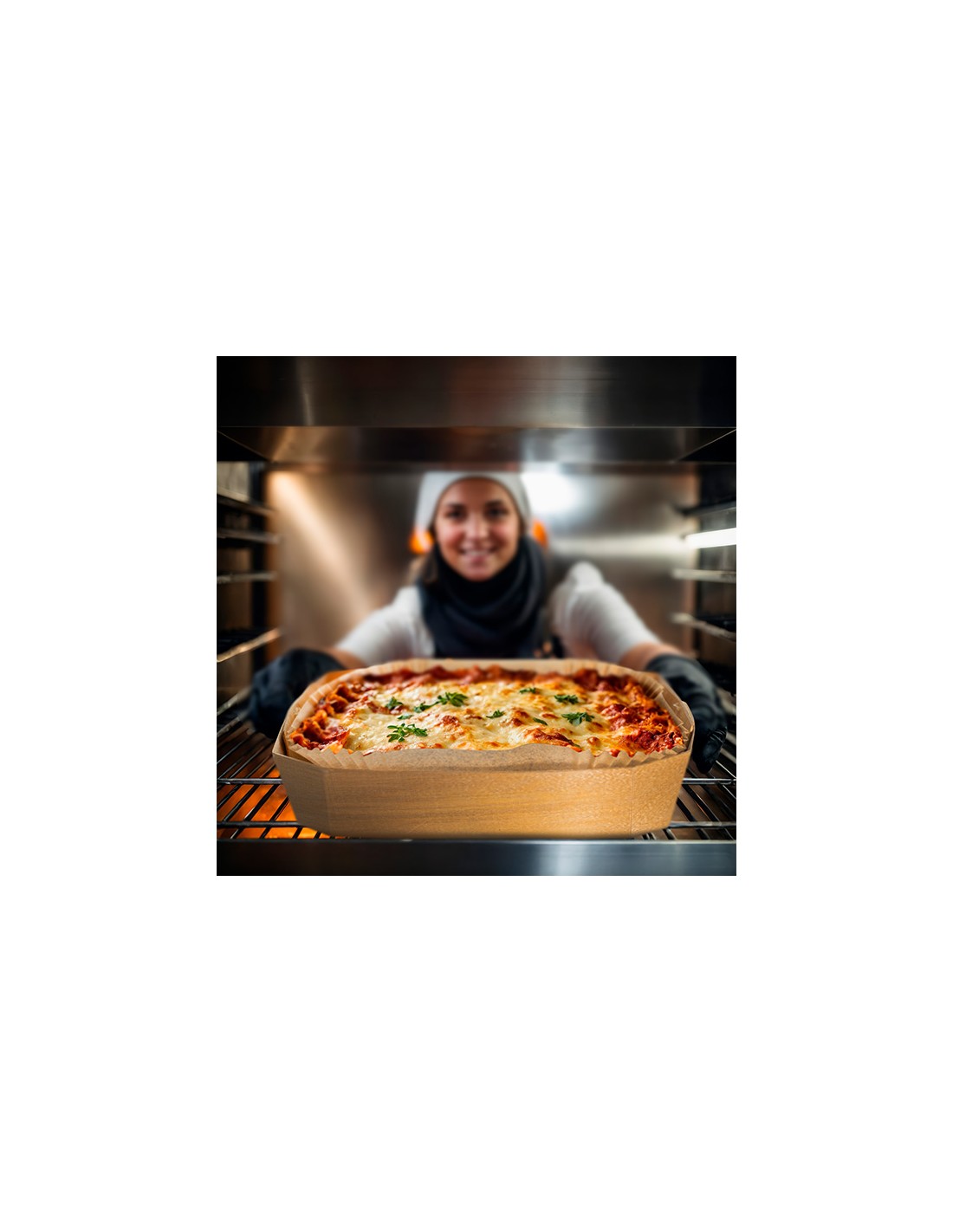Estas bandejas se presentan con papel alimentario horneable incluido.