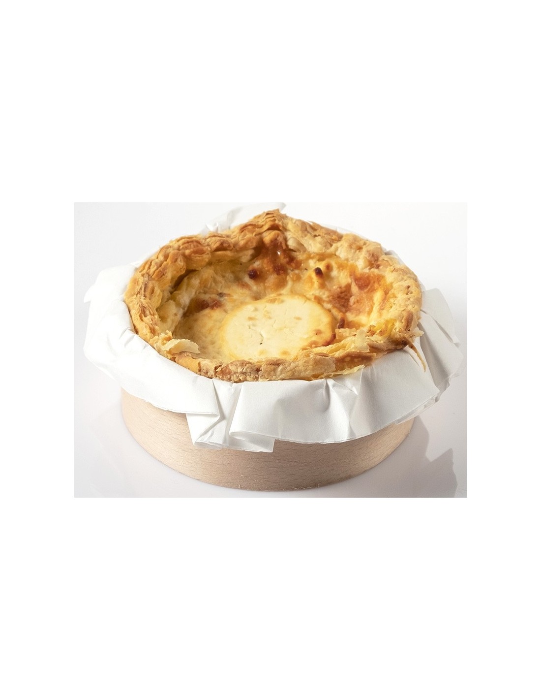Tapa para molde de madera de haya circular con papel alimentario horneable de Ø105x20 mm.