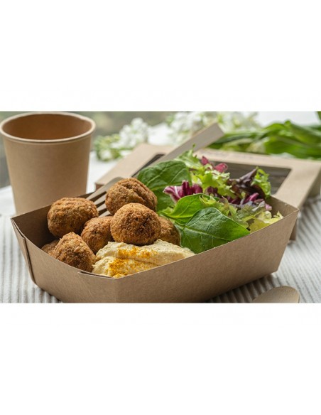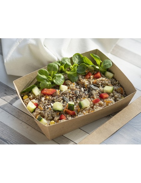 Barqueta alimentaria ecológica de cartón de alta calidad, resistencia y rigidez en color kraft de 159x111x23mm