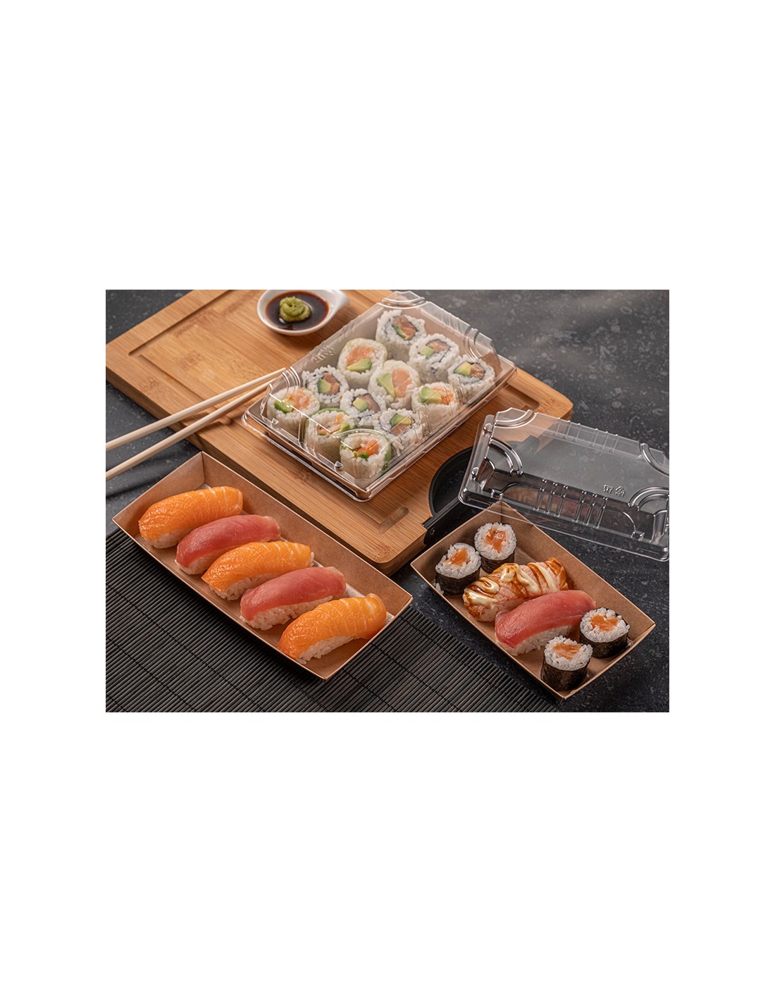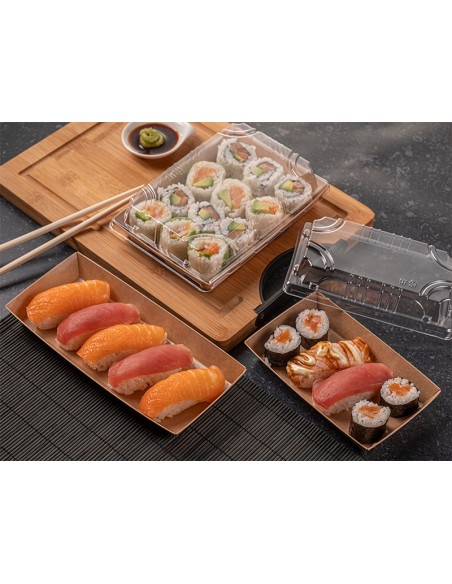 Estas barquetas se suelen utilizar para presentación de sushi y como envase para fritos.