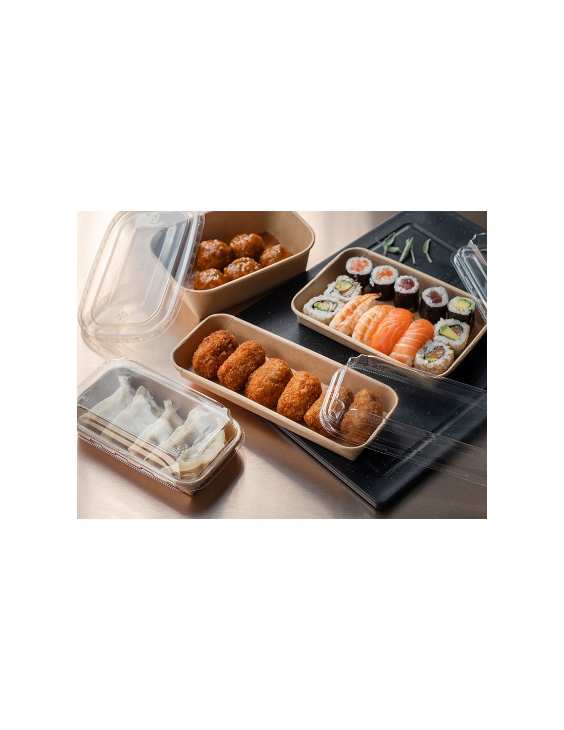 Impuesto plástico incluido. Bandejas con medidas superiores 221X138X24mm con opción de tapa transparente disponible con un óptimo sistema de cierre!