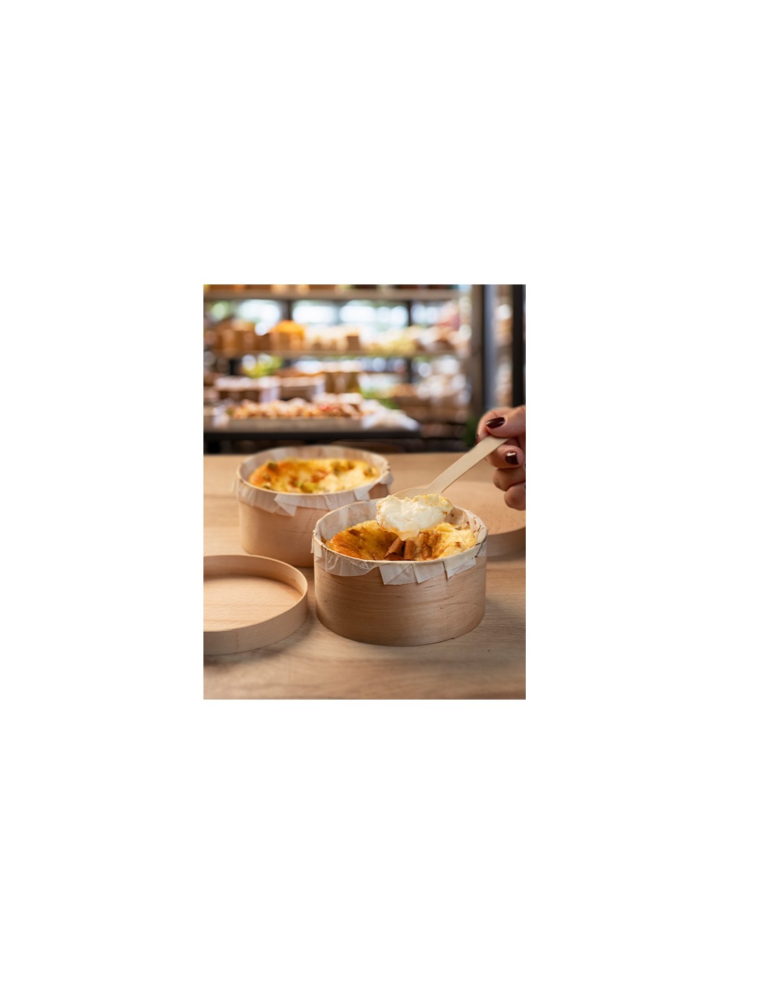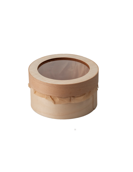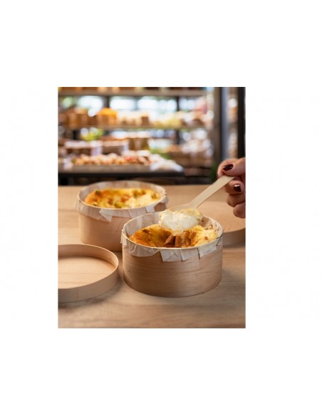Envase para fritos en cartón blanco con forma circular de ø100xø60x70 mm.