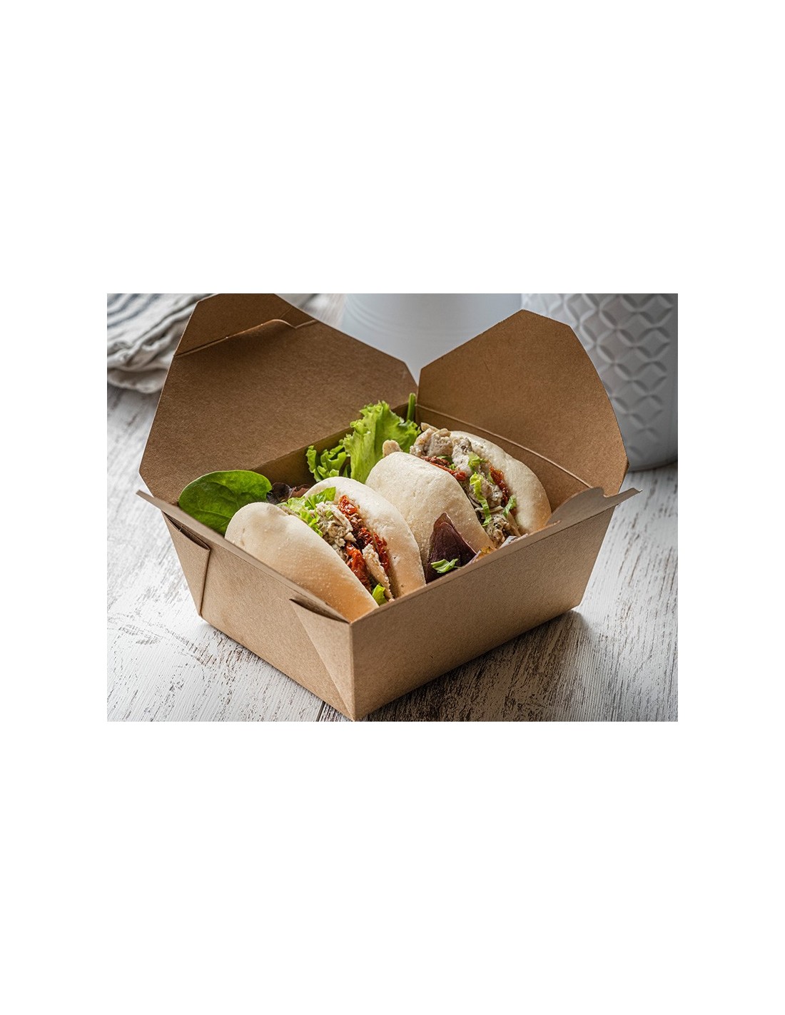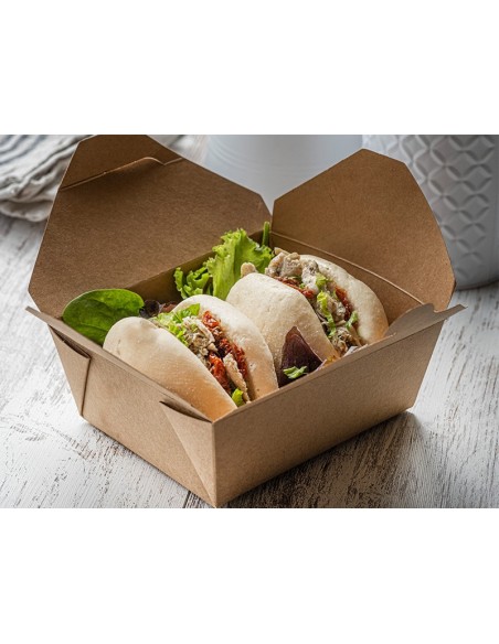 Con estos envases de cartón kraft en color marrón podrás servir todo lo que necesites transportar son ideales para fideos, arroces, y prácticamente todo lo que puedas necesitar trasladar. Al incluir la tapa en el mismo envase son muy prácticos y cómodos y prácticos.